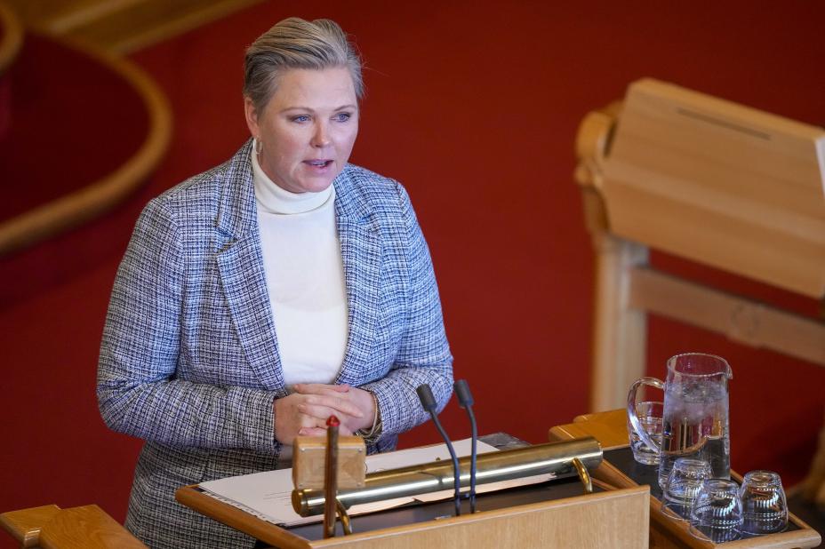 Utviklingsminister Anne Beathe Tvinnereim (Sp) undertegnet torsdag en avtale om at Norge skal gi 120 millioner kroner til FNs arbeid med katastrofeforebygging i utviklingsland. Pengene gis i perioden 2022–2025. Foto: Javad Parsa / NTB