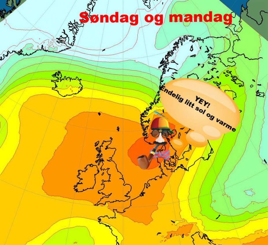 Best vær først i øst, deretter i vest. Håp om 15 grader, melder Meteorologene.