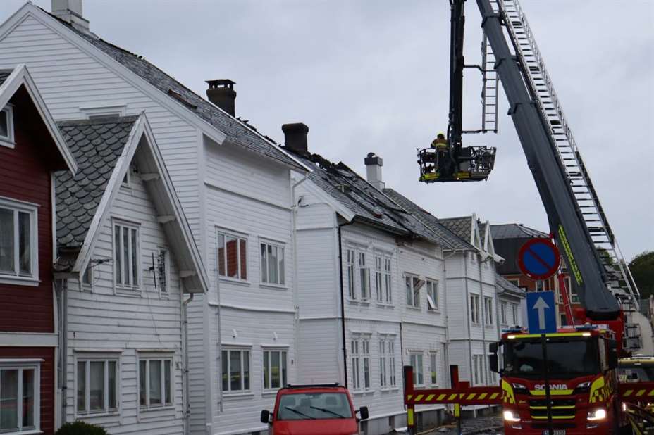 Boligbrann: Det ble meldt om brann i en tomannsbolig i Skåragata i sentrum av Haugesund ved 03.20-tiden i natt.