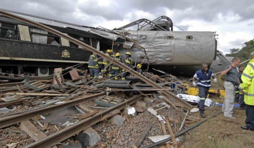 De to togsettene kolliderte ved Mountain View-stasjonen i Pretoria, og bilder fra stedet viser veltede vogner og skadde passasjerer som behandles av helsepersonell på plattformen.