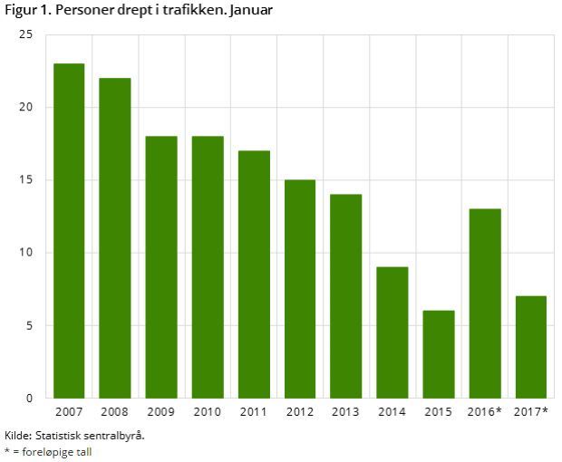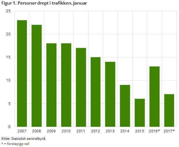 I årets første måned omkom 7 personer i veitrafikkulykker på norske veier. Dette er 6 færre enn i samme måned i fjor.