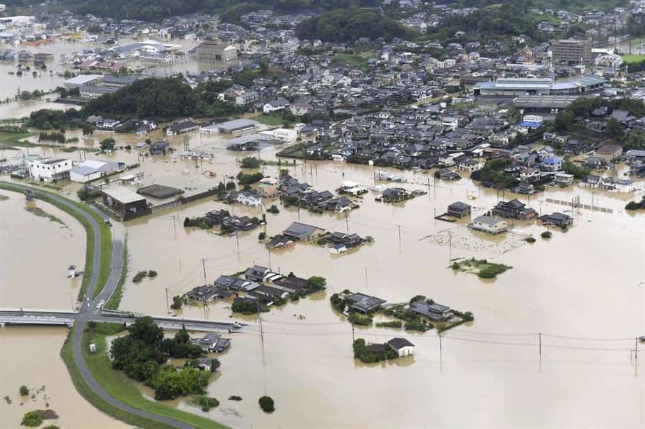 Over 12 centimeter regn ble registrert i byene Saga og Taku i løpet av en time onsdag, ifølge Japans meteorologiske byrå. Torsdag morgen er det ventet nedbør på opptil 20 centimeter i Kyushu og 18 centimeter i regionene Kanto, Koshin og Tokai.