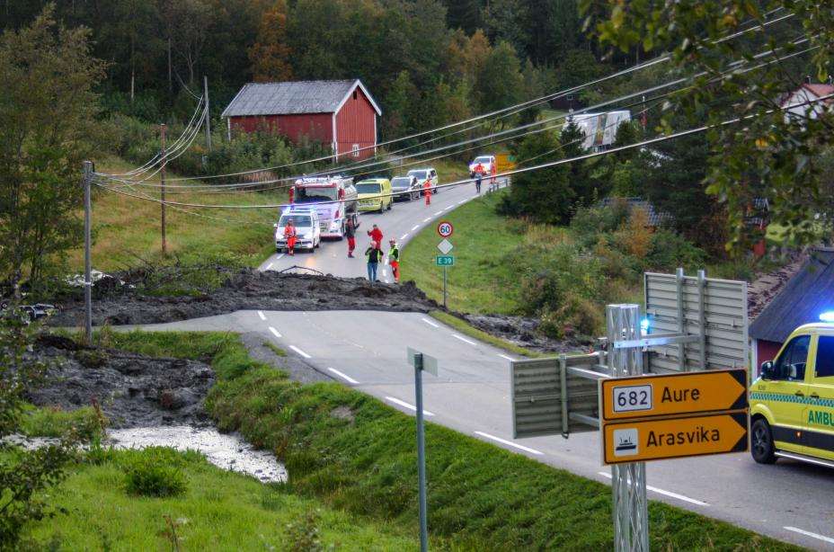 Nødetatene ble varslet i 19.30 fredag kveld. Et cirka 200 meter langt og 20 meter bredt jordras hadde feid med seg deler av et hus på Hennset i Valsøyfjord i Heim kommune. Bilder fra stedet viser at halvparten av huset er knust av raset.