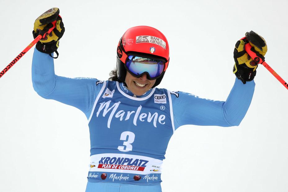 Østerrikeren lå noe bak Brignone ved de første mellomtidene, men hentet seg mesterlig tilbake nedover i løypa. I mål matchet hun Brignones tid på 1.18,19.