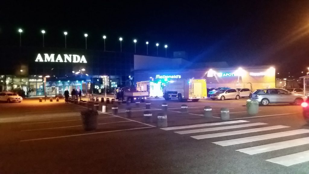 Det var ved 20.15-tiden at alle nødetatene ble sendt til Amanda Storsenter etter at brannalarmen ble utløst ved gullsmedbutikken Bjørklund.