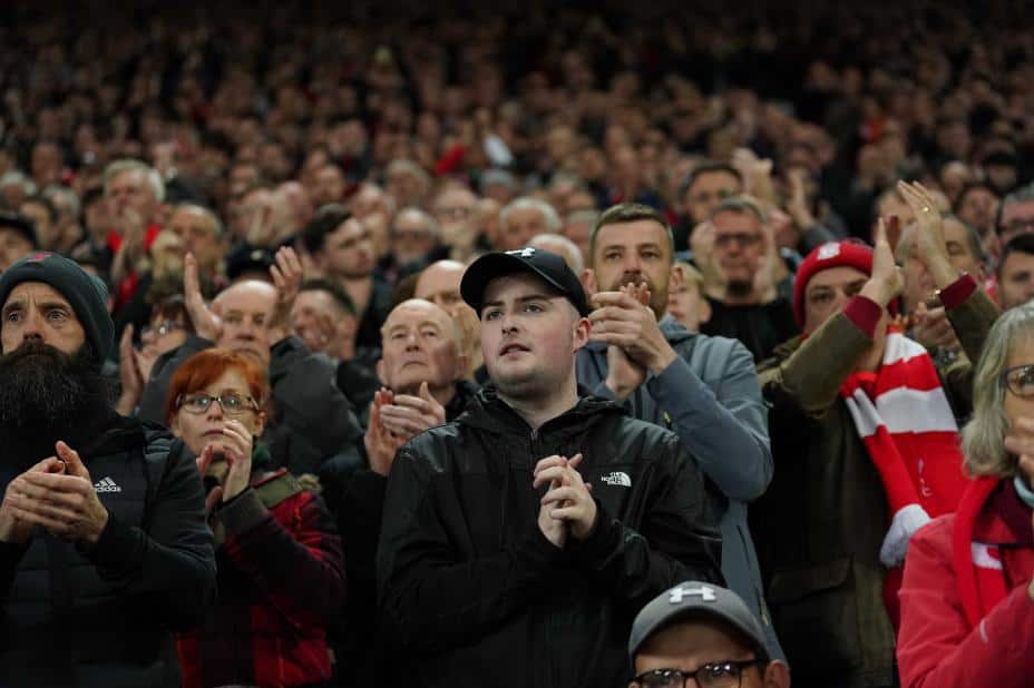 Sport: På et fullsatt Anfield var fansen til erkerivalene samlet om å klappe for å markere støtte til Ronaldo og hans familie. Det skjedde sju minutter ut i oppgjøret.