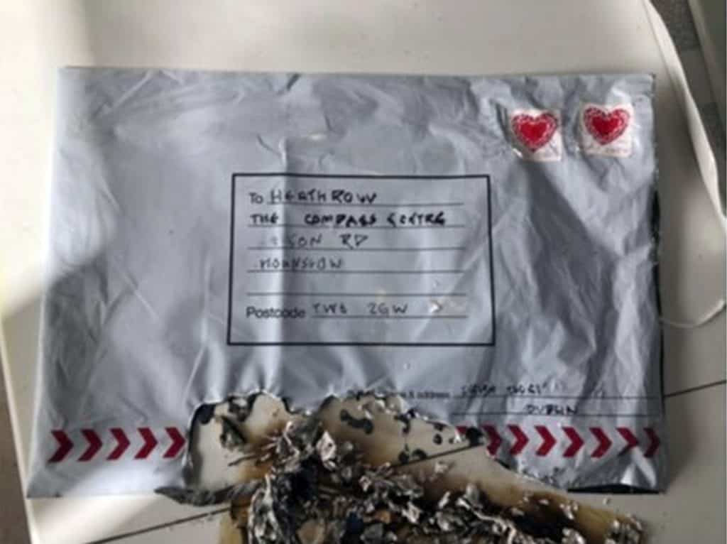 Pakken som ble sendt til en kontorbygning ved Heathrow-flyplassen, begynte å brenne da den ble åpnet. Men det er ikke kommet meldinger om personskader. De to andre pakkene ble ikke åpnet før politiets bombeeksperter kom til stedet.