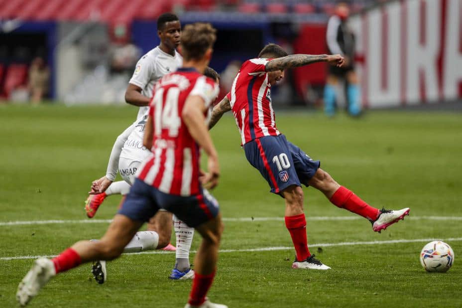Ángel Correa fintet seg fri og satte inn 1-0-målet via et Huesca-bein etter 38 minutter. Vel ti minutter før slutt ble kampen punktert da Yannick Carrasco ble spilt på åpent mål og bredsidet inn 2-0.