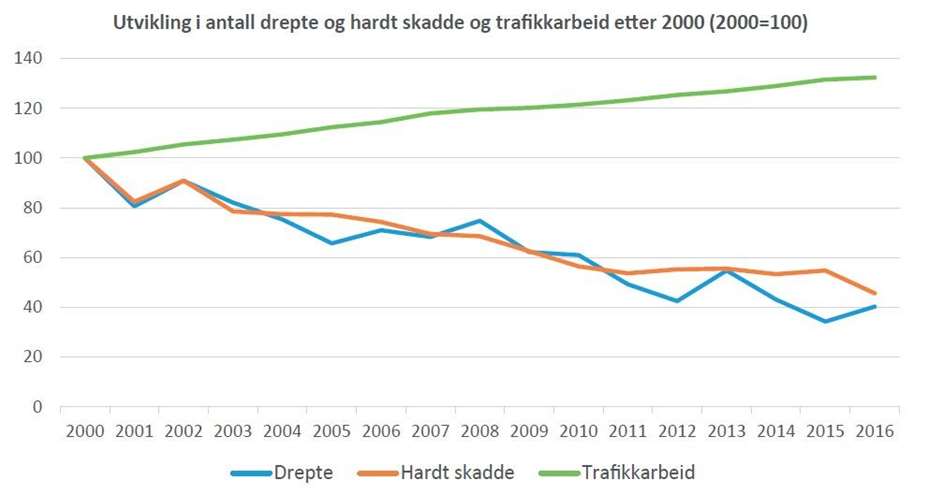 Det har vært en stabil nedgang i antallet trafikkdrepte de siste årene.
