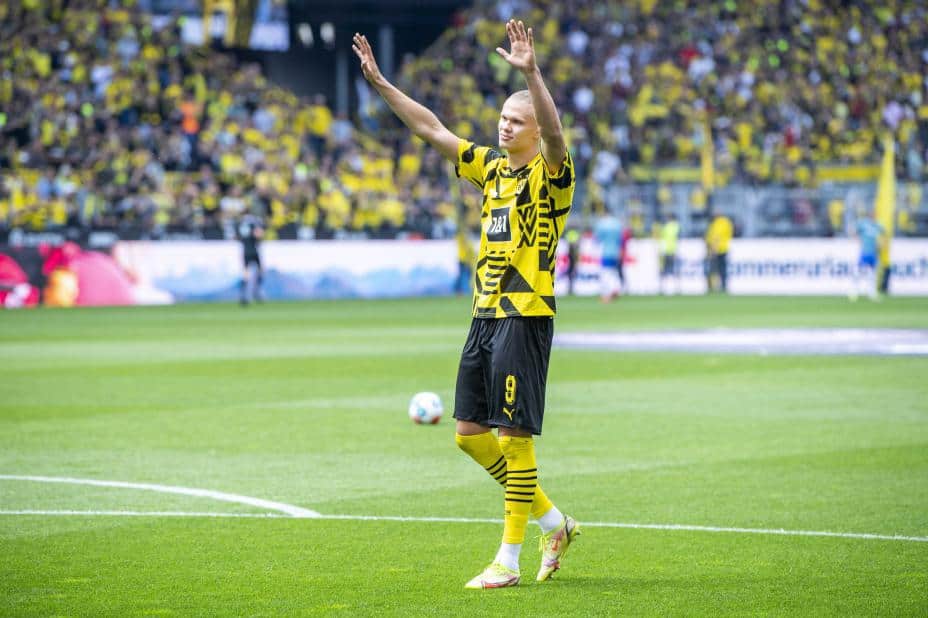 Nordmannen er Manchester City-spiller fra 1. juli. Han endte på 85 mål på 88 kamper i Borussia Dortmund. Dit kom han fra Salzburg i januar i fjor.