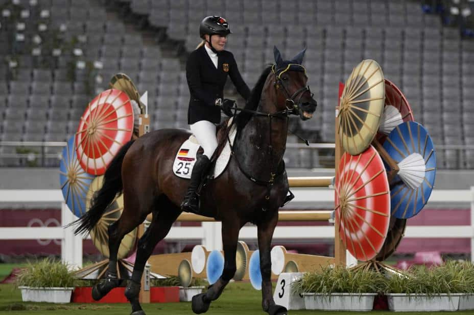 Den tyske treneren Kim Raisner skal der ha slått en hest som viste motvilje mot å gi seg i kast med hinderbanen. Raisner ble etterpå diskvalifisert fra sommerlekene.