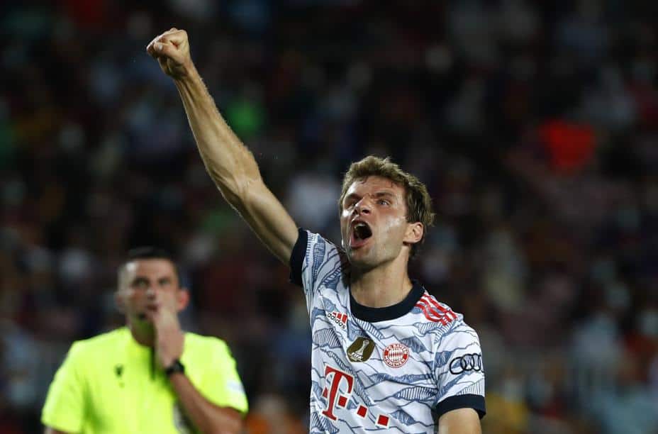 I det 33. minutt i Barcelona dro Bayern hjemmespillerne ut av posisjon med raske kortpasninger, før Leroy Sané satte opp Müller for skudd fra vel 20 meter. Eric Garcia vendte ryggen til, ble truffet av ballen og endret retning på skuddet slik at ter Stegen var utmanøvrert og sjanseløs.