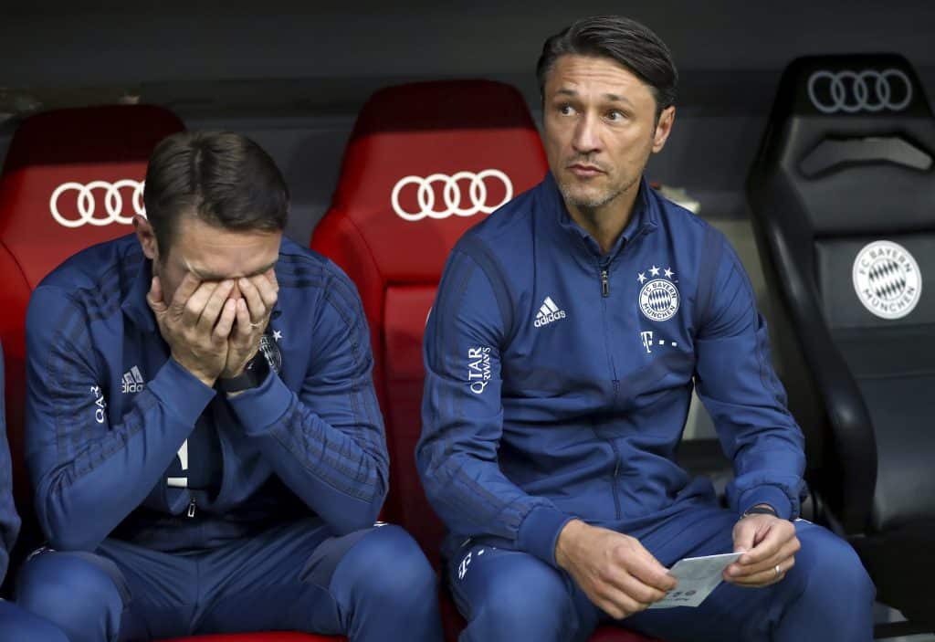 Bayern München-trener Niko Kovac (til høyre) har sikret seg den franske midtbanespilleren Mickaël Cuisance. Foto: Matthias Schrader / AP / NTB scanpix