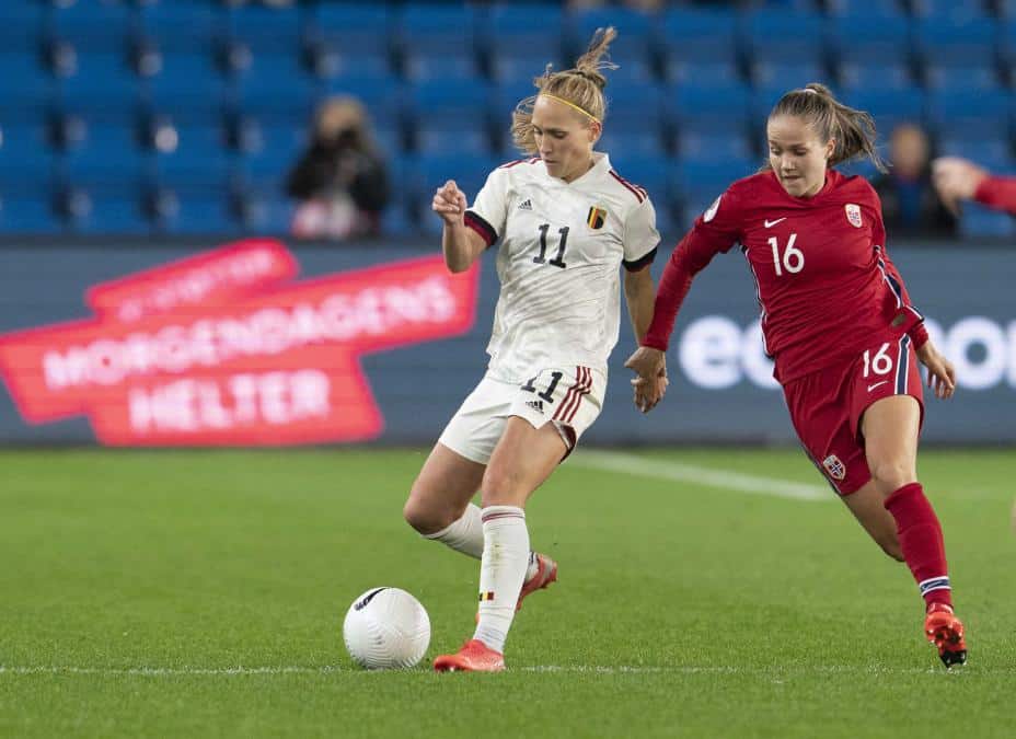 Tine De Caigny ga Belgia ledelsen etter et kvarter i Leuven, mens Hannah Eurlings og Janice Cayman økte hver sin gang før pause. De Caigny satte selv punktum tidlig i 2. omgang da Polen ble distansert for godt i kvalifiseringen.
