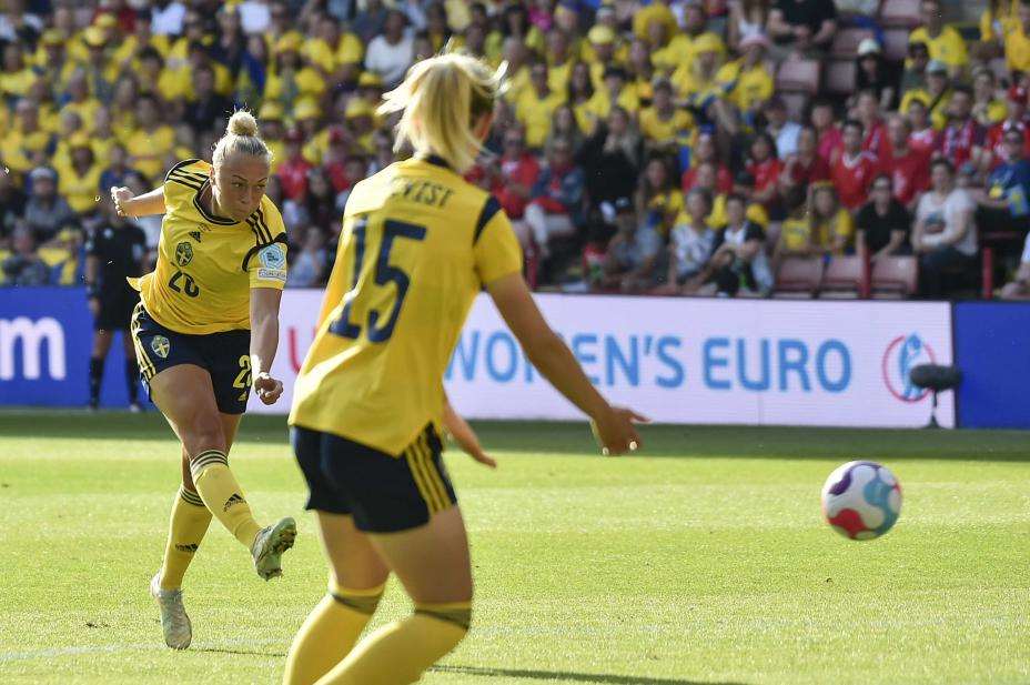 Etter hvilen forsøkte Sveits seg høyere oppe i banen, men de ble umiddelbart straffet. Barcelona-spiller Fridolina Rolfö fikk den plassen hun trengte på siden og skjøt uttakbart i hjørnet til 1-0 etter 53 minutter.