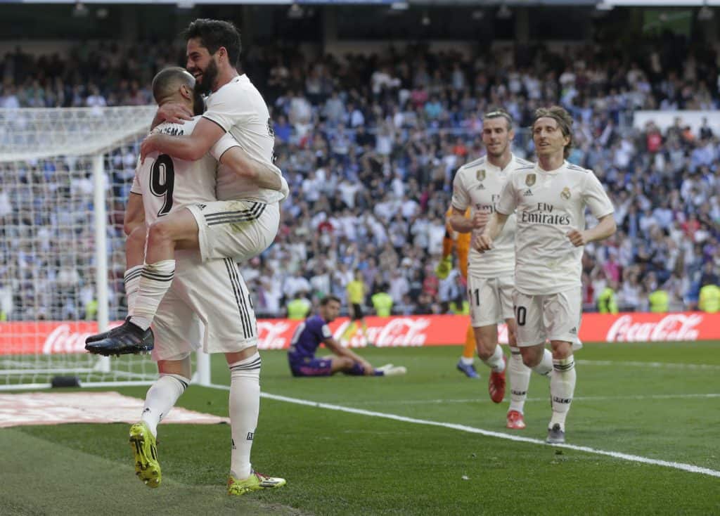 Isco og Karim Benzema scoret hvert sitt mål da Real Madrid så vidt slo bunnlaget Huesca. Foto: Paul White / AP / NTB scanpix