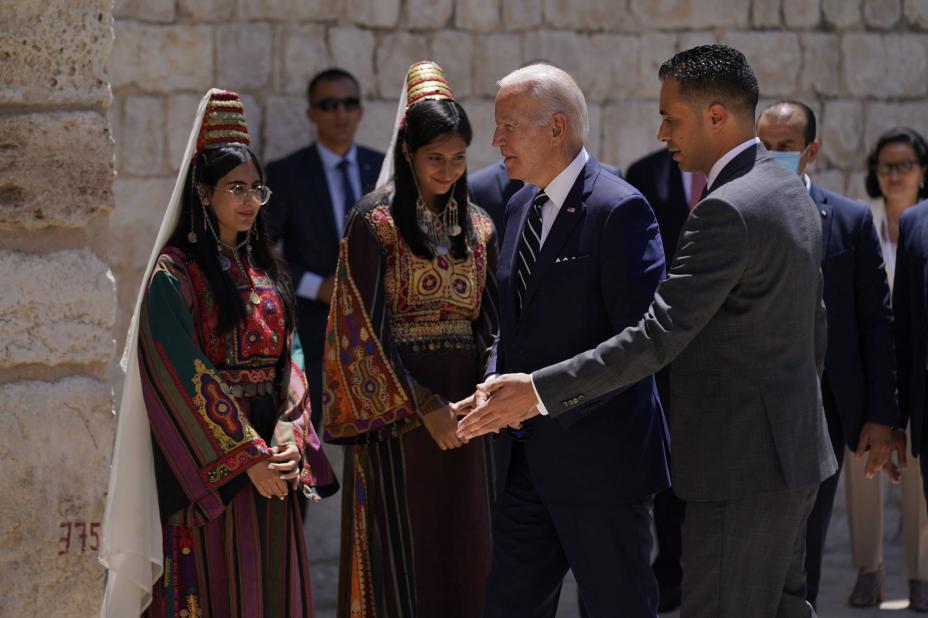 I Betlehem ble Biden møtt med flere store skilt og bannere med teksten «Mr. president, dette er apartheid». Disse var satt opp av den norskstøttede israelske menneskerettsorganisasjonen B’Tselem i anledning besøket.