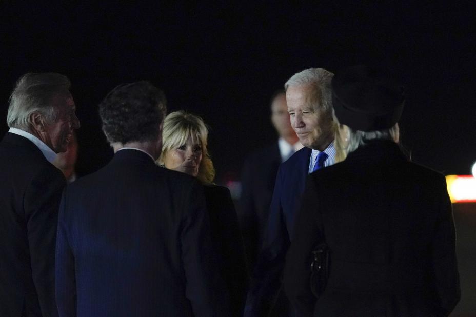 USAs president Joe Biden og førstedame Jill Biden ankom Storbritannia sent lørdag kveld. De skal delta i dronning Elizabeths begravelse mandag.