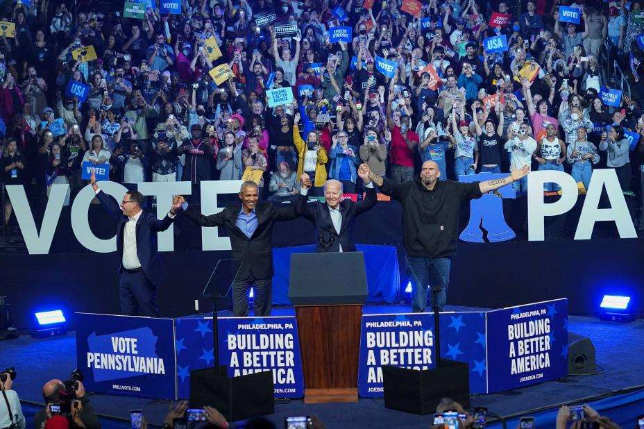 Der var han til stede for å støtte de to demokratiske kandidatene Josh Shapiro og John Fetterman som stiller i henholdsvis delstatens guvernør- og senatsvalg.