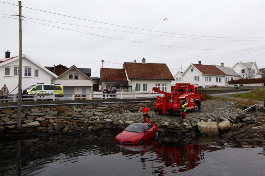 Bil i sjøen på Åkra