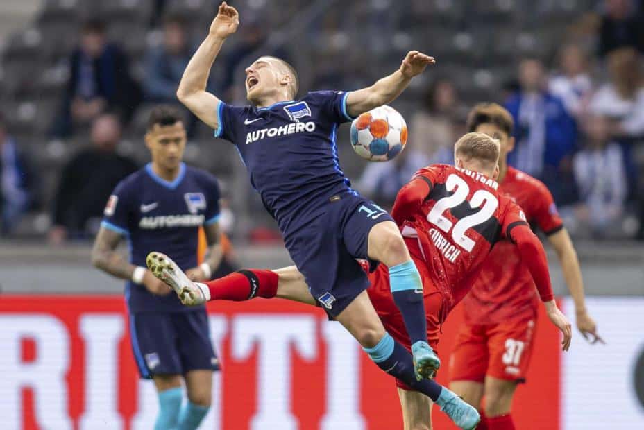 Hertha fikk en drømmestart på skjebnekampen da Davie Selke scoret på innlegg fra Plattenhardt før det var spilt fire minutter. Målet ble først vinket av for offside, men det ble godkjent etter VAR-gjennomgang.