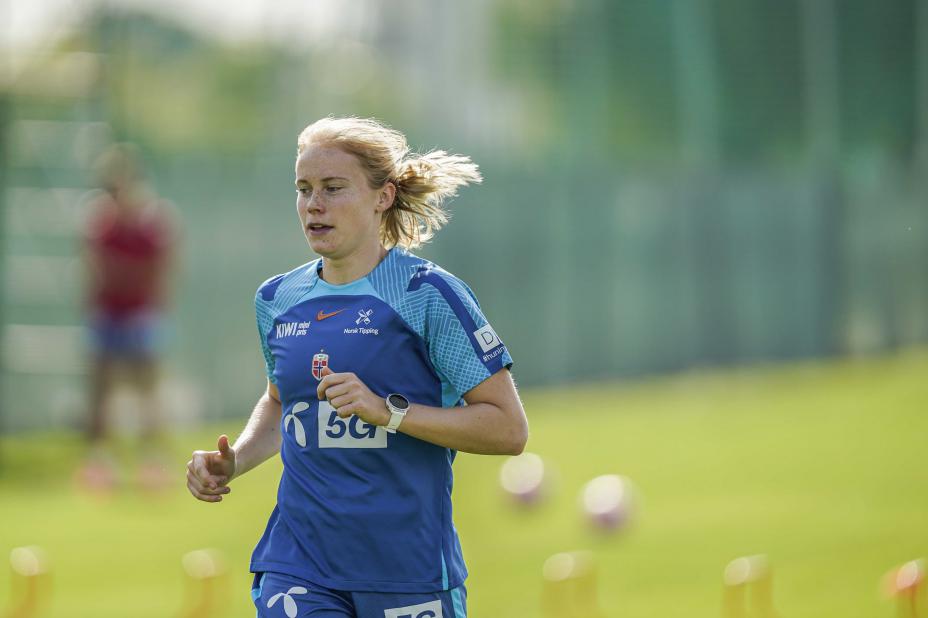 Julie Blakstad avbildet på landslagstrening i Spania nylig. Lørdag scoret hun i Manchester Citys seier over Everton. Foto: Rodrigo Freitas / NTB