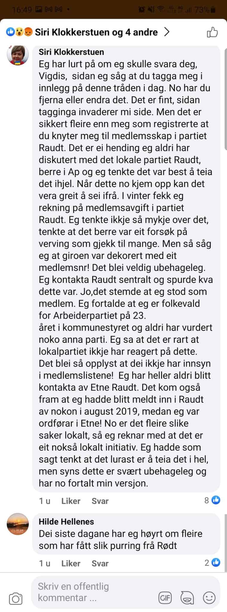 Politikk: Det har den siste tiden kommet inn meldinger til ordføreren i Etne fra både kommunestyrerepresentanter og vararepresentanter om at de ufrivillig, og uten kjennskap til det, er blitt meldt inn i partier Rødt.