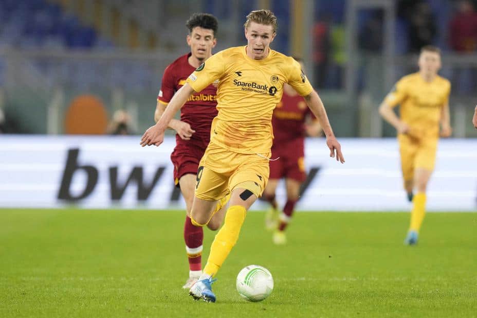 Ola Solbakken sendte Glimt i ledelsen mot Roma. Foto: Alessandra Tarantino / AP / NTB