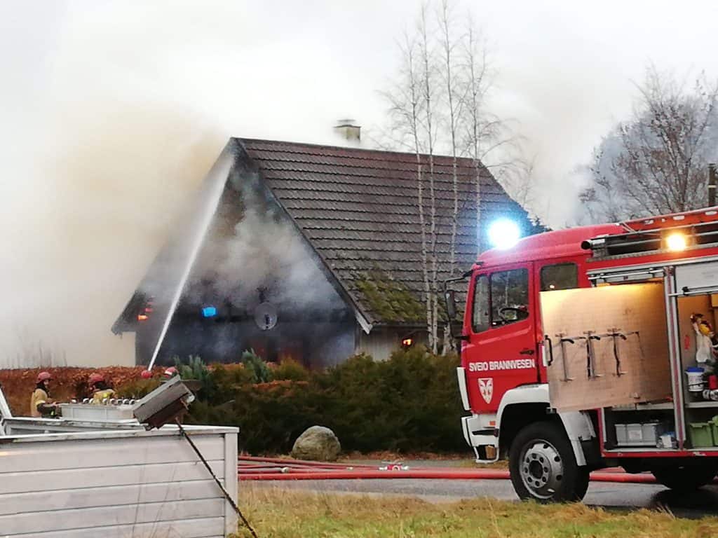 #Sveio: Brannvesenet meldte kl. 1426 om brann i enebolig i Tingvegen. Huset er overtent. Beboere er ute og i sikkerhet. Ukjent årsak.