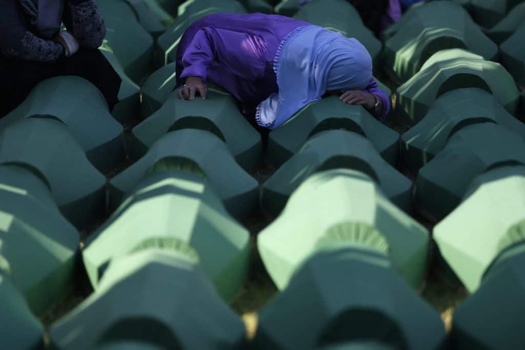 Rundt 8.000 muslimske menn og gutter ble drept og likene dumpet i utallige massegraver i dagene etter at serberne erobret Srebrenica i det østlige Bosnia 11. juli 1995. Kvinnene og barna måtte flykte bort gjennom skogen.