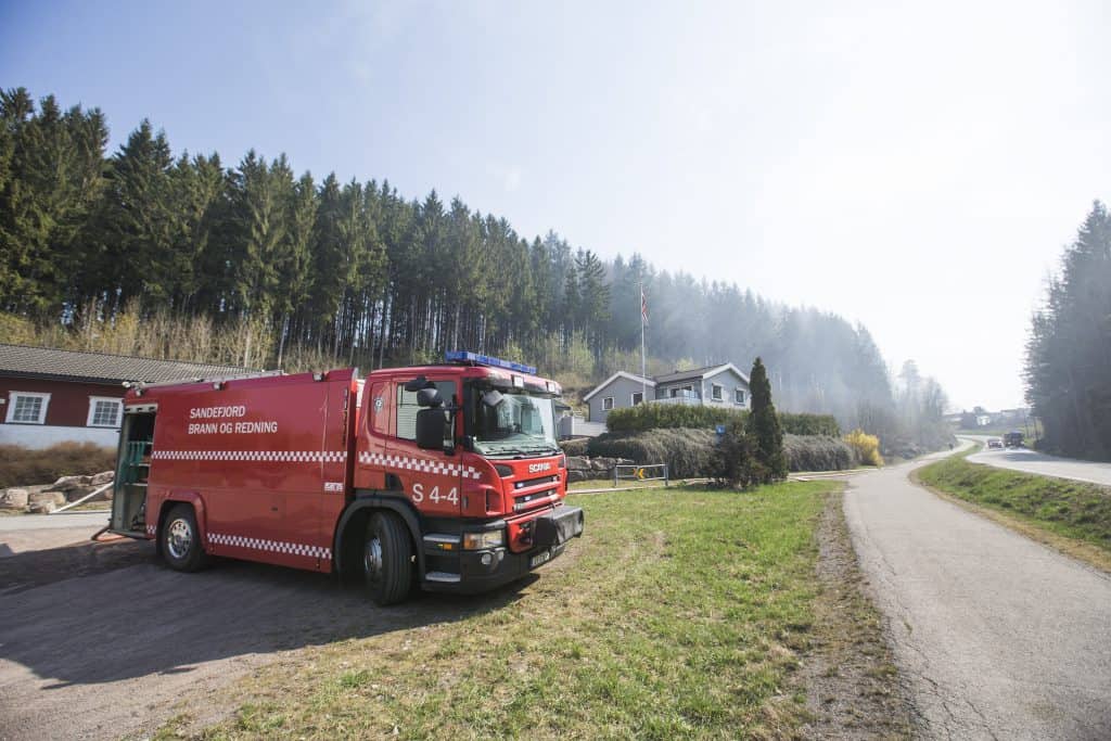 Nødetatene, Sivilforsvaret, en brannbil fra Torp Sandefjord lufthavn og et brannhelikopter rykket ut til stedet, men det var ifølge politiet ikke behov for helikopteret.