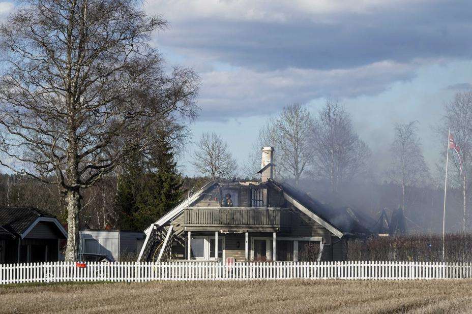 Det brant på institusjon på Dal i Eidsvoll mandag ettermiddag. Foto: Terje Pedersen / NTB