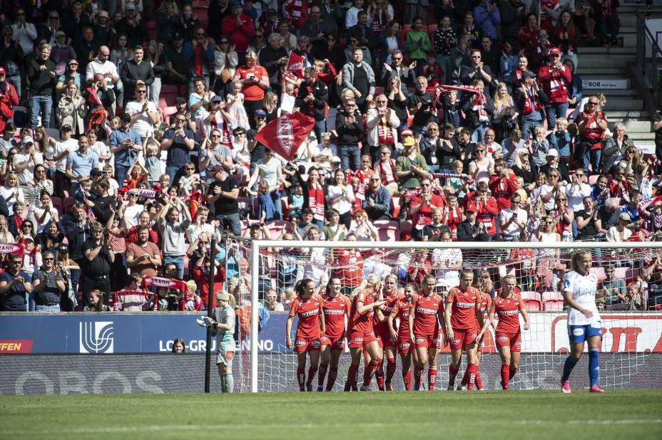 Cecilie Kvamme sendte et rekordstort publikum til himmels da hun ga Brann ledelsen mot Vålerenga på Brann Stadion. Foto: Marit Hommedal / NTB