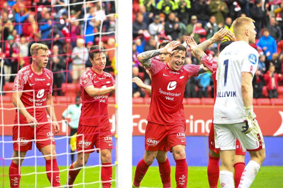 Sport: Etter en tam omgang løsnet det for gjestene etter en snau time. Felix Horn Myhre tok enkelt Brann foran på en returball, mens Aune Heggebø utnyttet en keeperbrøler sju minutter senere.