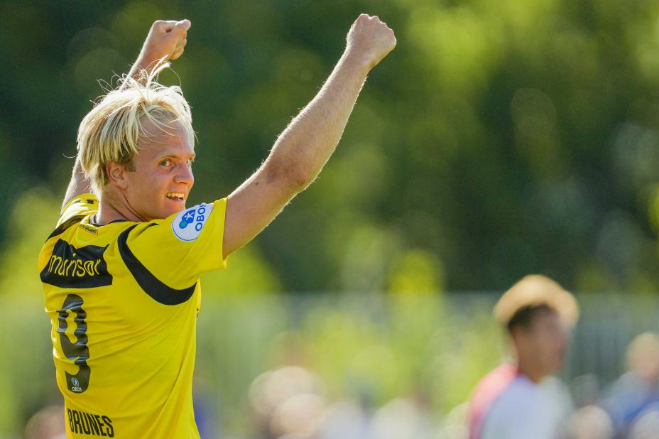 Braut Brunes er toppscorer i 1. divisjon med 12 mål på 14 kamper. Jærbuen er fetter av stjernespissen Erling Braut Haaland.