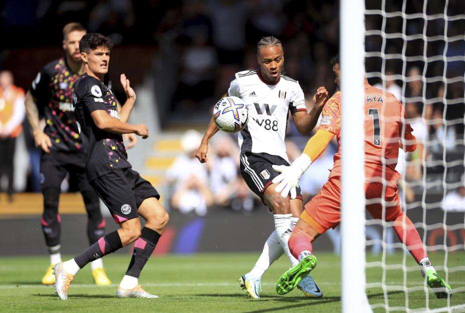Brentford-keeper David Raya, som tidligere i kampen hadde stått i veien for Mitrovic, var sjanseløs på å nå bort.