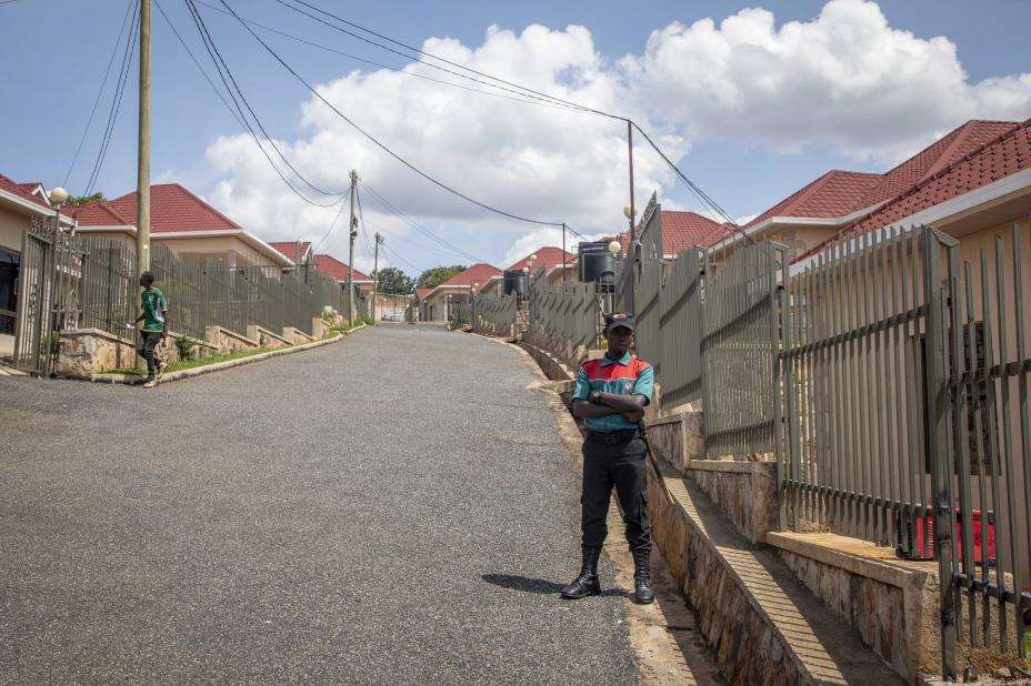 En sikkerhetsvakt fotografert i en gate i Kigali der det ventes at asylsøkere fra Storbritannia vil bli innkvartert. Arkivfoto: AP / NTB
