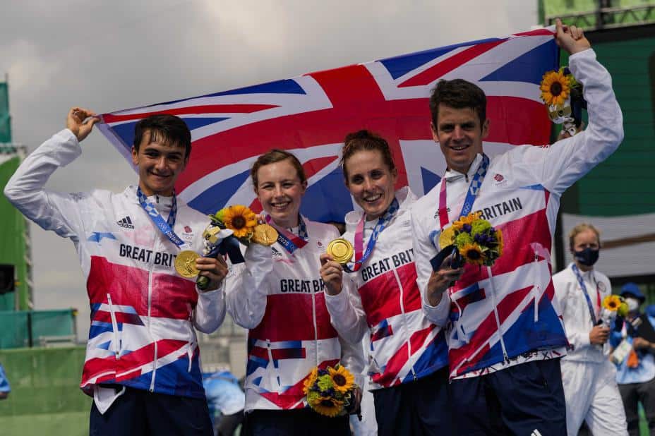 Storbritannia dominerte og vant tidenes første OL-tittel i blandet lagkonkurranse i triathlon lørdag. De øvrige medaljene gikk til USA og Frankrike.