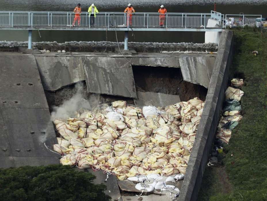 Vannstanden er redusert med mer enn en halv meter siden torsdag, men skadene er fortsatt på et kritisk nivå, ifølge britiske myndigheter. Det dumpes sandsekker fra helikopter for å forsterke demningen, og det pumpes 5 tonn vann i minuttet ut av reservoaret.