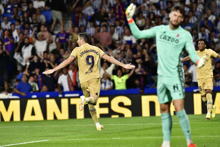 Robert Lewandowski gikk målløs av banen i sin første ligakamp for Barcelona, men søndag bidro han med to mål 4-1-seieren over Real Sociedad.