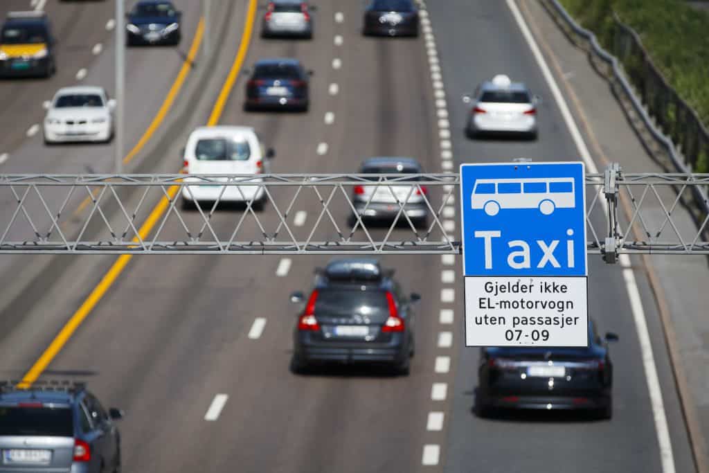 Elbiler må ha passasjerer om de skal kjøre i kollektivfeltet på E18 i rushtiden, men det er ikke nok, mener Yrkestrafikkforbundet. Foto: Heiko Junge / NTB scanpix