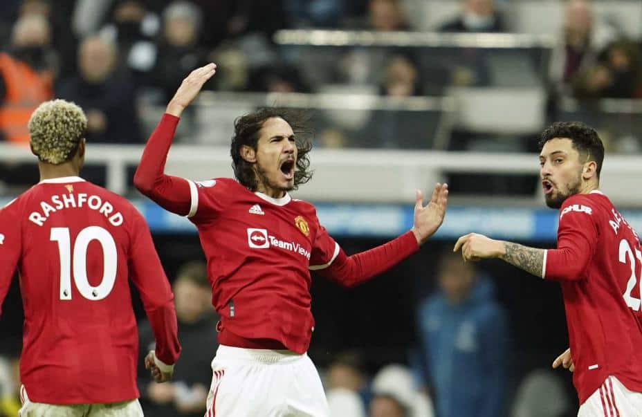 Edinson Cavani jubler for scoring i Manchester Uniteds 1-1-kamp mot Newcastle. Foto: Jon Super / AP / NTB