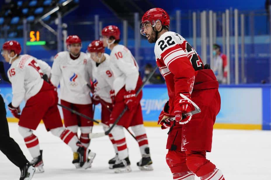 Sport: Det danske laget, som i fjor sikret OL-billett på bekostning av Norge, konsentrerte seg om å tette igjen bakover og gjøre det vanskelig for russerne. Kampen var målløs etter en første periode der ROC vant skuddstatistikken 6-3.