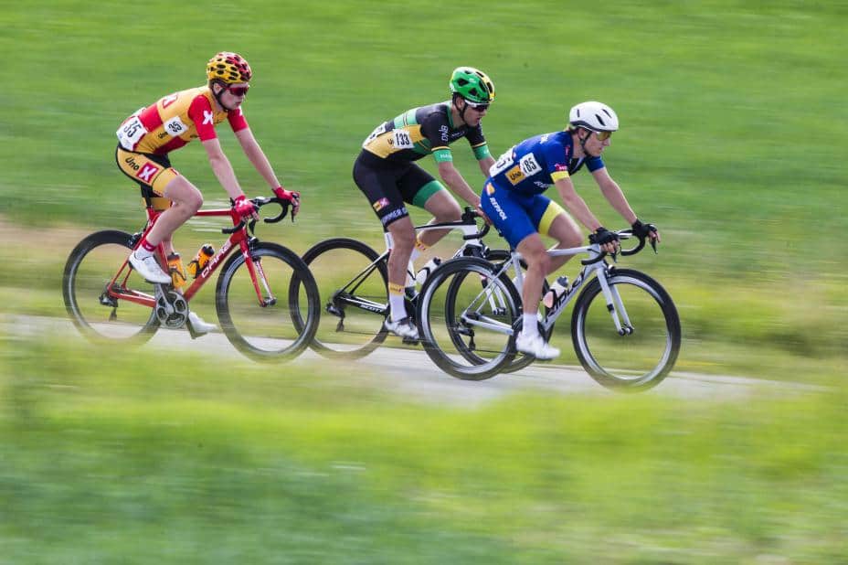 André Drege i midten var lenge i tet av UCI-rittet Gylne Gutuer i Stange søndag. Foto: Trond Reidar Teigen / NTB