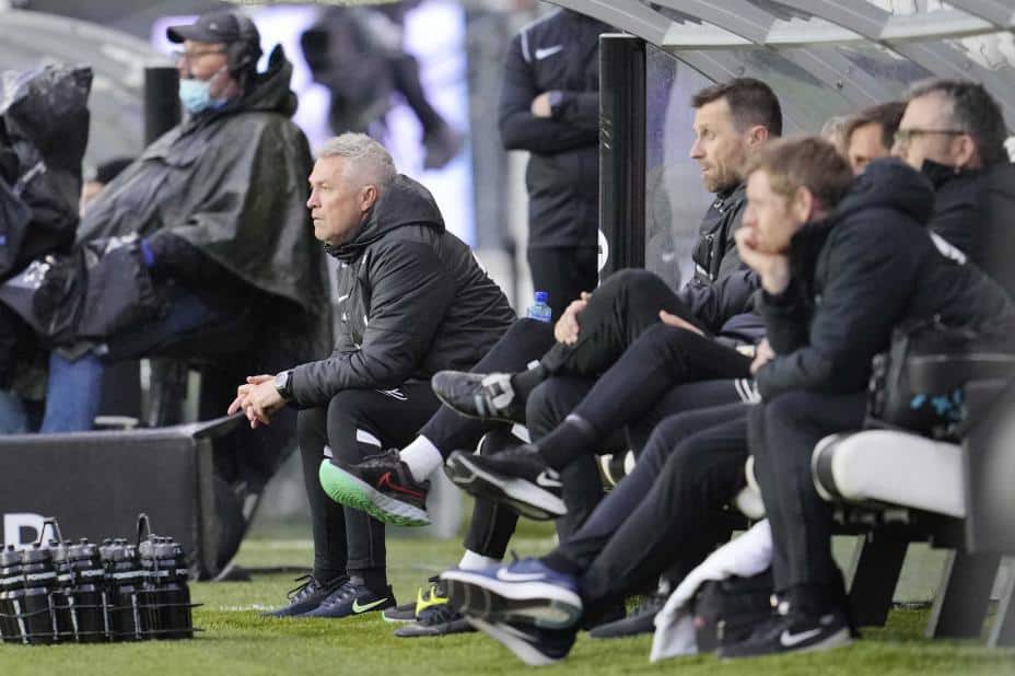 Kåre Ingebrigtsen, assistenttrener Eirik Horneland og resten av Brann har fått ny sportssjef. Foto: Ole Martin Wold / NTB