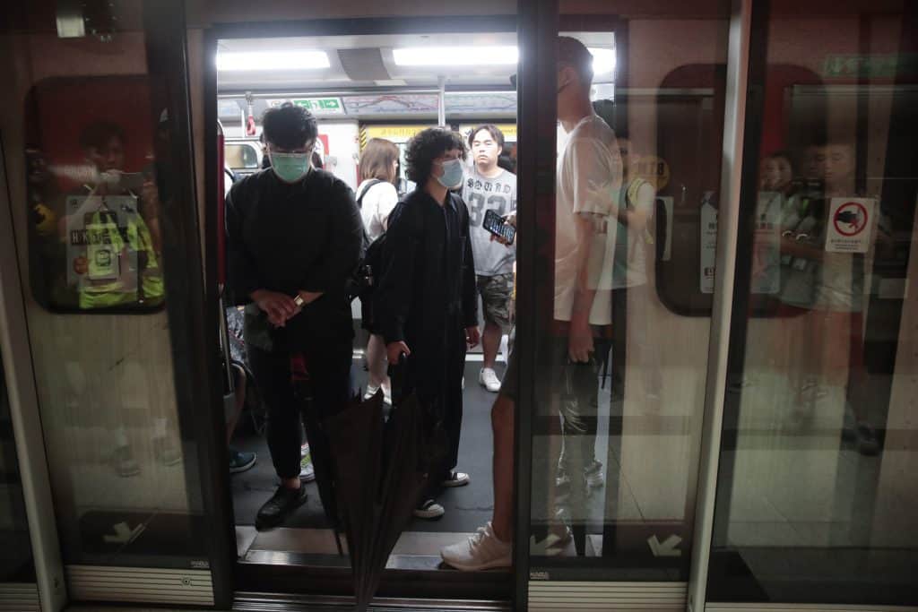 Mandag morgen hadde demonstranter møtt opp ved en rekke togstasjoner i Hongkong, der de stilte seg opp ved togdører og hindret dem i å lukkes. Aksjonen førte til store forsinkelser i togtrafikken.
