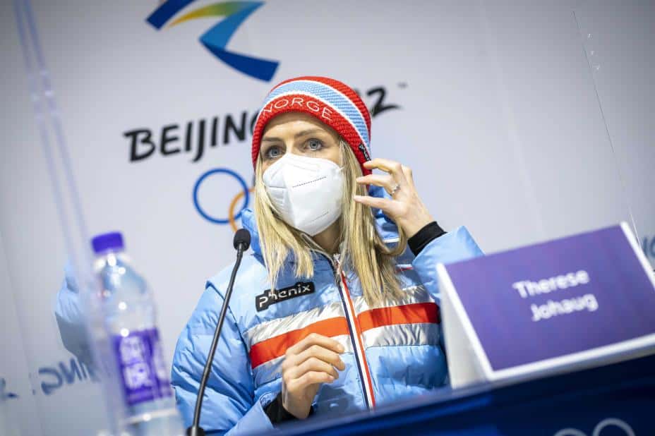 Therese Johaug var eneste som stilte på pressekonferansen. De tre andre fikk fri etter å ha deltatt på gårsdagens sprint i Zhangjiakou.
