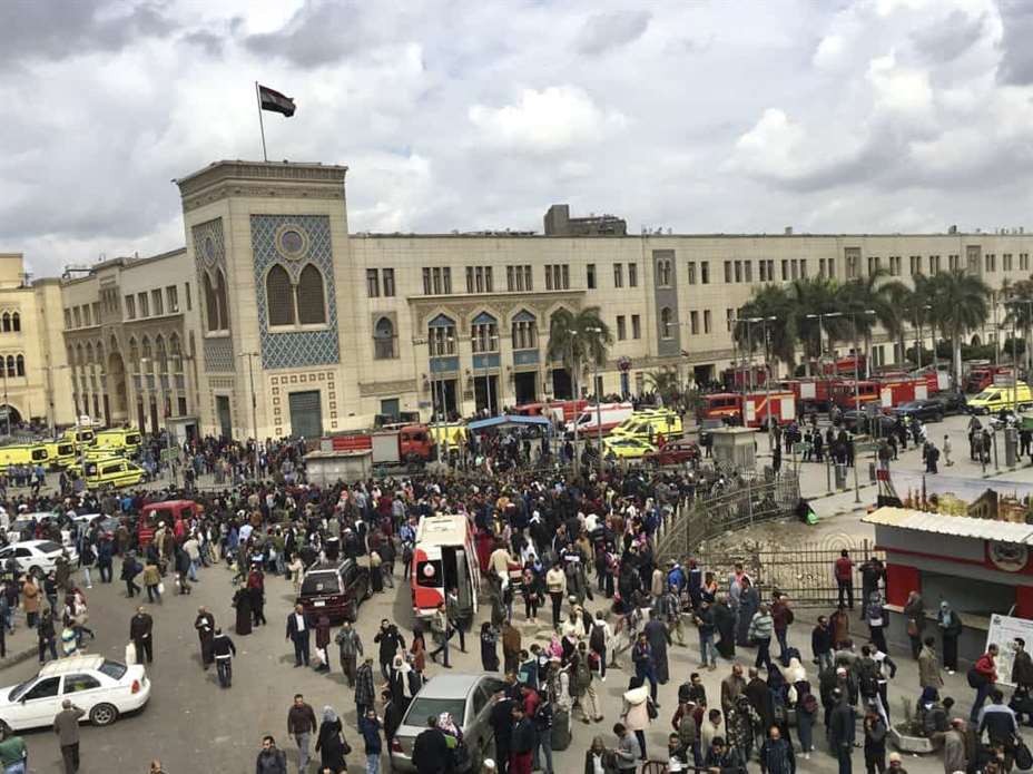Ulykker og naturkatastrofer: Brannen oppsto da et tog kolliderte med en bom inne på Ramsis-stasjonen onsdag morgen. Kollisjonen førte til en eksplosjon i togets drivstofftank, noe som utløste en kraftig brann som omsluttet en del av stasjonen, ifølge egyptiske togmyndigheter.