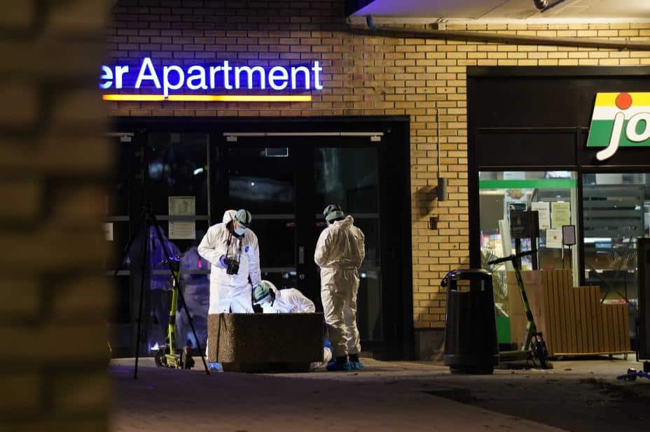 Politiets etterforskere på stedet etter den dødelige knivstikkingen på Dælenenga i november i fjor. Foto: Terje Bendiksby / NTB