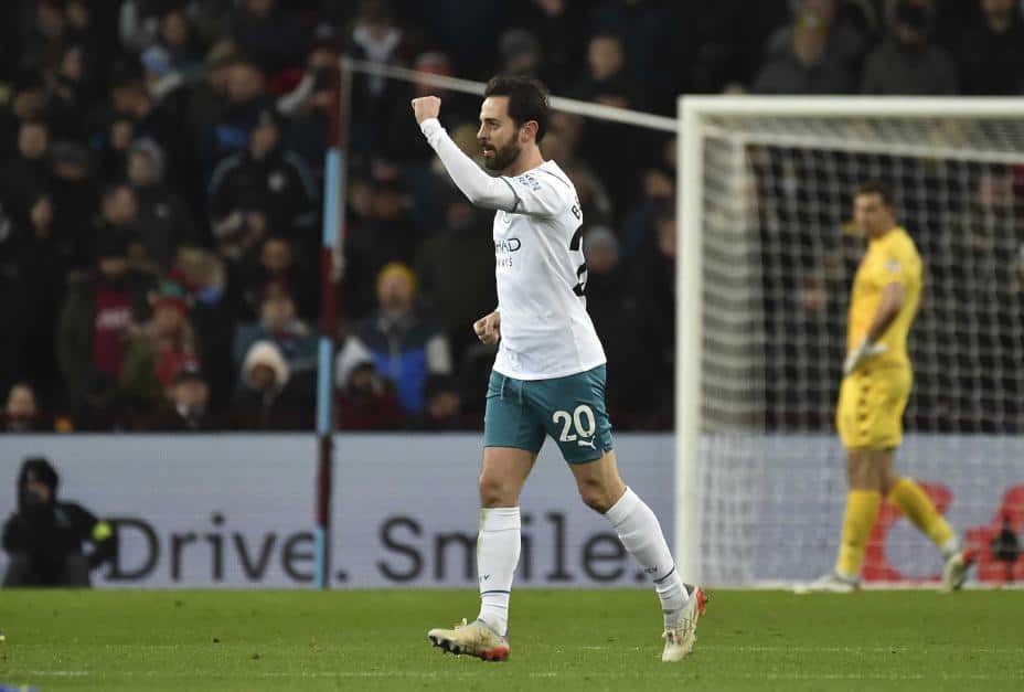Et volleyskudd fra øverste hylle signert Bernardo Silva ble vinnermålet da Manchester City vant 2-1 over Aston Villa og holdt tritt med serieleder Chelsea.